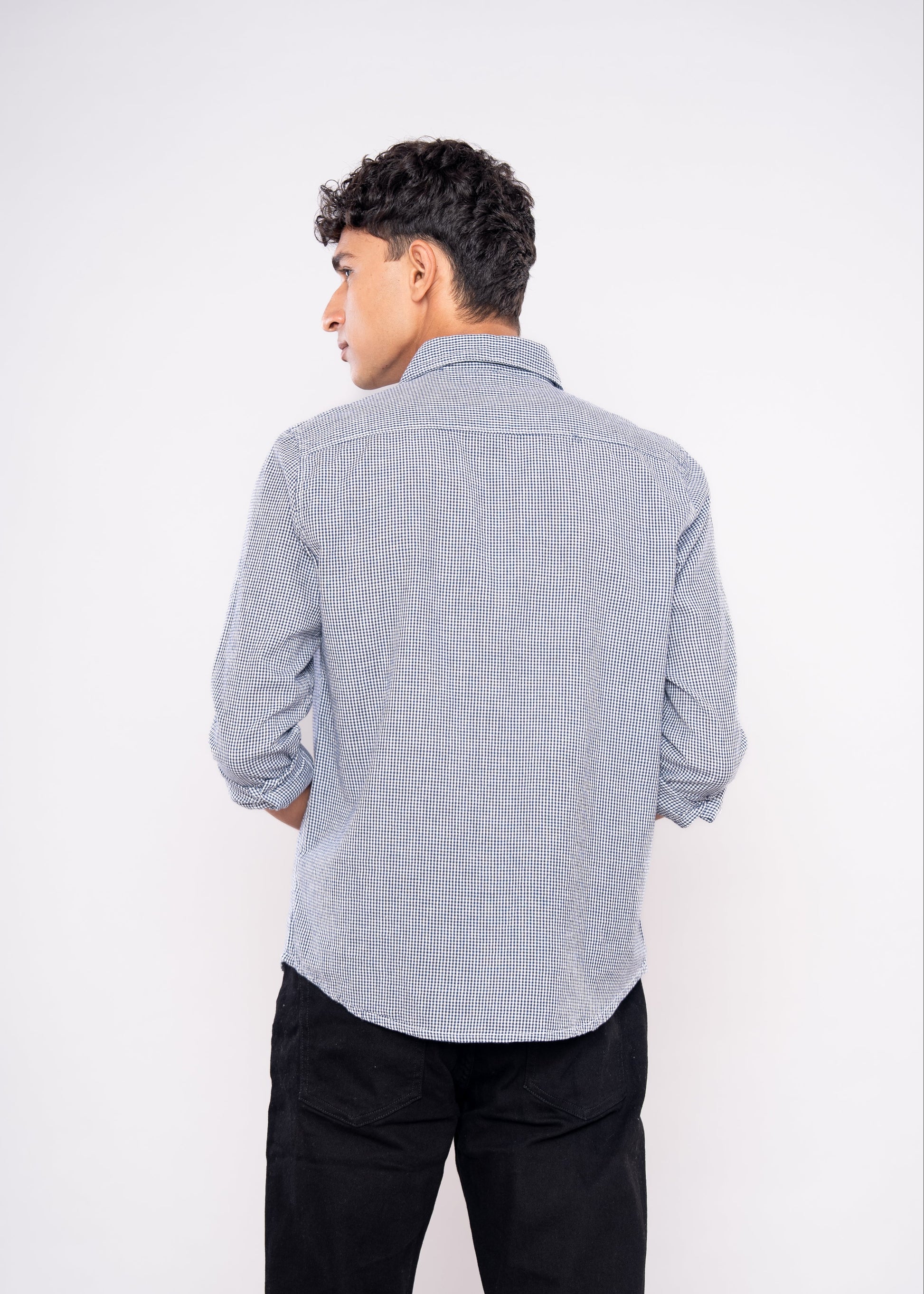 This men's regular fit shirt is perfect for any occasion with its small black and white checks and front pocket. Whether you're dressing for the office or a formal event, this shirt will provide a polished look. Its comfortable fit makes it suitable for a casual day as well.