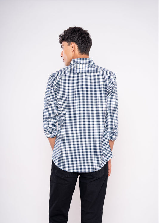 Save 54%Navy Blue White Medium Checked Shirt